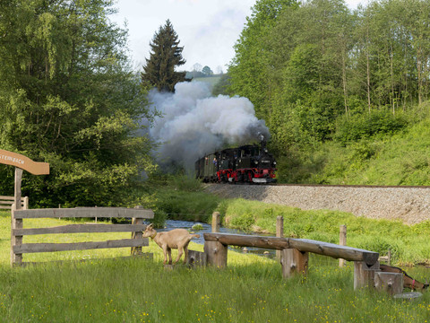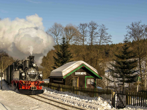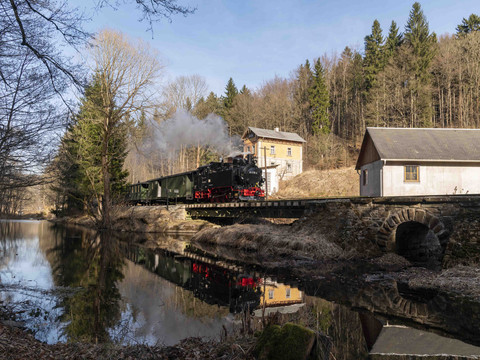 Experience old technology in the present day on the Preßnitz Valley Railway in the upper Ore Mountains and visit one of the most beautiful museum railroads in Germany!
