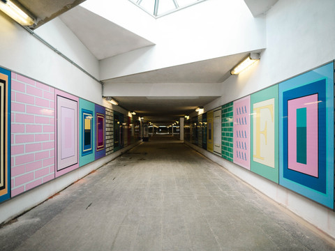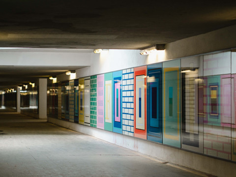 The unique art installation Glance by Tanja Rochelmayer in the underpass of Flöha station consists of 171 highly reflective, colorful panels. The work recalls the history of the nearby cotton mill and leads to its former and current location, now a new center of the town. Tanja Rochelmeyer was born in Essen in 1975 and now lives in Berlin. You can find out more about the artwork here.