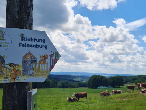 The target group is children between the ages of 3 and 8. The path is designed so that you can walk it as a circular route or in several stages on different days. The three large areas Magic Forest, Rock Castle, and Gold Mine can just as well be visited and discovered independently of each other.