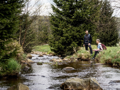 Start the tour at the Neurehefeld border crossing. Follow the ridge path in the direction of Rehefeld-Zaunhaus past the Hemmschuh nature reserve. In Rehefeld Zaunhaus, turn left towards the center of the village. Continue on the white-red-white markings through Rehefeld Zanunhaus along the Grabenweg to the Zinnbrücke bridge. From there, continue on the white-yellow-white markings along the Becherbachweg to Neuhermsdorf as far as the former railroad station. From there, follow the ridge path back to the starting point in Neurehefeld.
