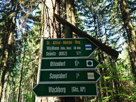 This scenic route leads from Hinterhermsdorf via the Weifberg, Wachberg, and Alfred-Meiche-Weg to Sebnitz.