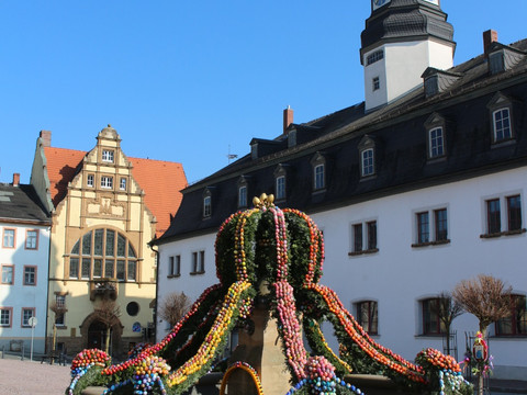 Highlights are the beautifully restored postal milestone at the marketplace, the village ensemble with the pond in Merkendorf, the choir tower church of Wöhlsdorf, and the Orla spring just outside the gates of the town of Triptis. In the guesthouse "Zum Löwen" in Gütterlitz, you can enjoy typical Thuringian-Vogtland cuisine.