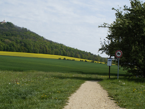 A route around the Görlitz local mountain Landeskrone. The route includes a fitness trail (sporty) and a bee educational trail (informative).