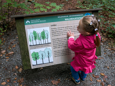 The Waldhusche Hinterhermsdorf is an adventure and exhibition area of the National Park. Four interconnected themed trails show different aspects of the topic »forest«.