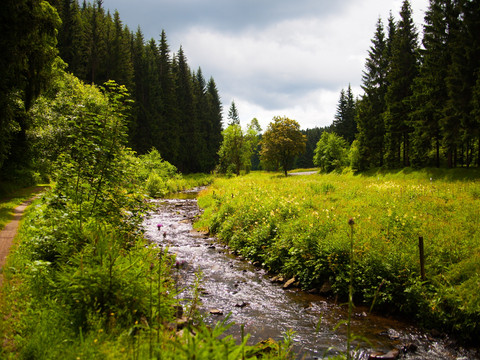 The Freiberger Mulde meanders wildly from Moldava in the Czech Republic through the Ore Mountains to Sermuth in the Leipzig lowlands.