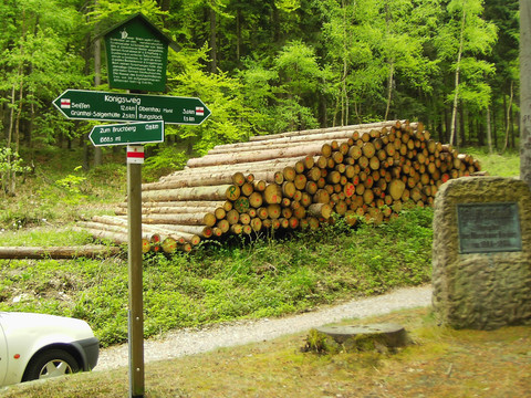 From the hiking car park Saigerhüttengelände or Grünthal train station, the path leads on the E3 (blue) long-distance trail towards Pföbe. Before crossing the S 216, you reach the Kammweg (blue), which you continue to follow. At the fork Pföbe, the path goes via the Sedanweg, the Stößerfelsenweg uphill to the Stößerfelsen (683 m, rest and viewpoint). Along the Stößerfelsenweg, you reach the kleine Steinbach. Continuing on the Brandleitenweg, you come to the Steinbach, where you leave the Kammweg. The Seinbachweg leads to the Hammerweg towards Rübenau. After a slight ascent on the Hammerweg, the Kammweg (blue) branches off. This marking is followed until Rübenau. The Hammerweg passes the church to the center of Rübenau. There is a place to eat at the Bergschänke. The return route follows the Hammerweg towards Olbernhau past the Wettinplatz. The Hammerweg flows into the Königsweg with the marking EB (red). The Dörfelbach valley is crossed, past the monument of Forest Master Schaal, the paved forest path leads downhill to the compression station. At the crossroads Heidenweg, you continue following the marking EB (red) through the industrial area to the Saigerhüttengelände car park, our starting point.