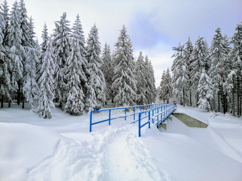 You start at the Altenberg Tourist Information heading towards Galgenteiche via Schellerhauer Weg. Walk straight ahead over the campsite to the dam of the large Galgenteich. On this, continue walking to the right. At the end, keep going straight over the bridge and turn left (to avoid the cross-country ski trail). After a short distance, go right again to Track 31. Follow this to the left and cross Rehefelder Straße. Continue until you turn right onto the I-Wing. After about 300 m, turn right again onto Track 30. Here you reach Kahleberg. The return route starts immediately via Track 30 and the I-Wing. Continue on this until you can turn left onto Old Zaunhäuser Way. This leads you to the ski lift and the adjacent sledding hill. Turn left through the Kurpark and back to the train station.