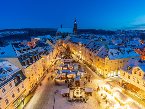 A scenic circular hiking route around Schneeberg with magnificent views over the Ore Mountains. The approximately 19 km long route leads over Gleesberg, the Filzteich, Lindenau, Griesbach, and Keilberg back to the city center. Two observation towers, diverse landscape impressions, and traces of mining make the hike a varied experience.