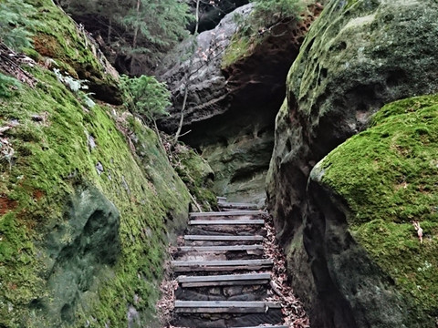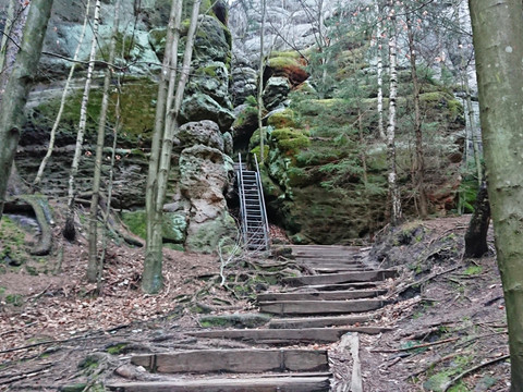 Then you go from the Kirnitzschtal a bit further into the Sächsische Schweiz National Park - specifically into the Kleiner Zschand - to the famous Kuhstall, which is worth discovering and exploring.