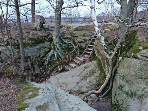 The route has a moderate trail profile but is still classified as moderate in difficulty due to its length of almost 17 kilometers, but it does not require any special skills. It runs relatively flat over Lichtenhain after a short but still steep ascent from Sebnitz, crossing the Panorama Trail, which offers an interesting view over almost the entire Hintere Sächsische and Böhmische Schweiz and, in good weather, even to the Hoher Schneeberg.